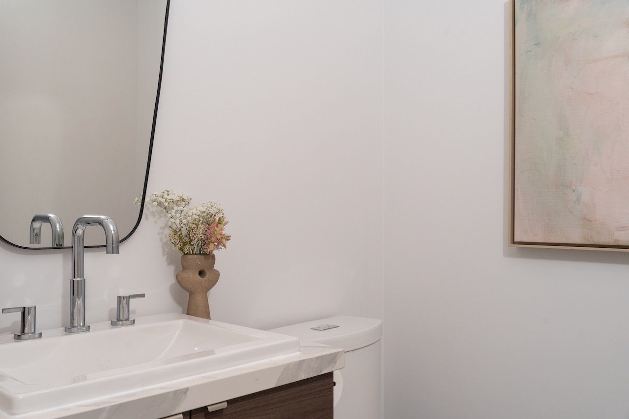 Inside, thoughtful design intersects with livable luxury: a built-in desk nook, a pantry (one of the only suites in the building to have one) main floor powder room, California closets (in fact, all three bedrooms have custom closets!) and electronic blinds.