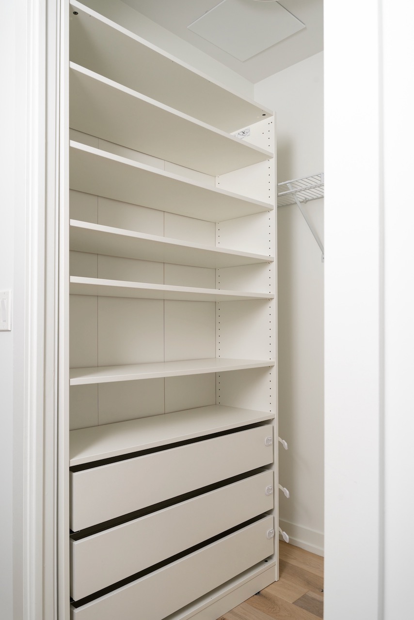 - Added custom closets from IKEA to the smaller bedrooms and California Closets to the primary.